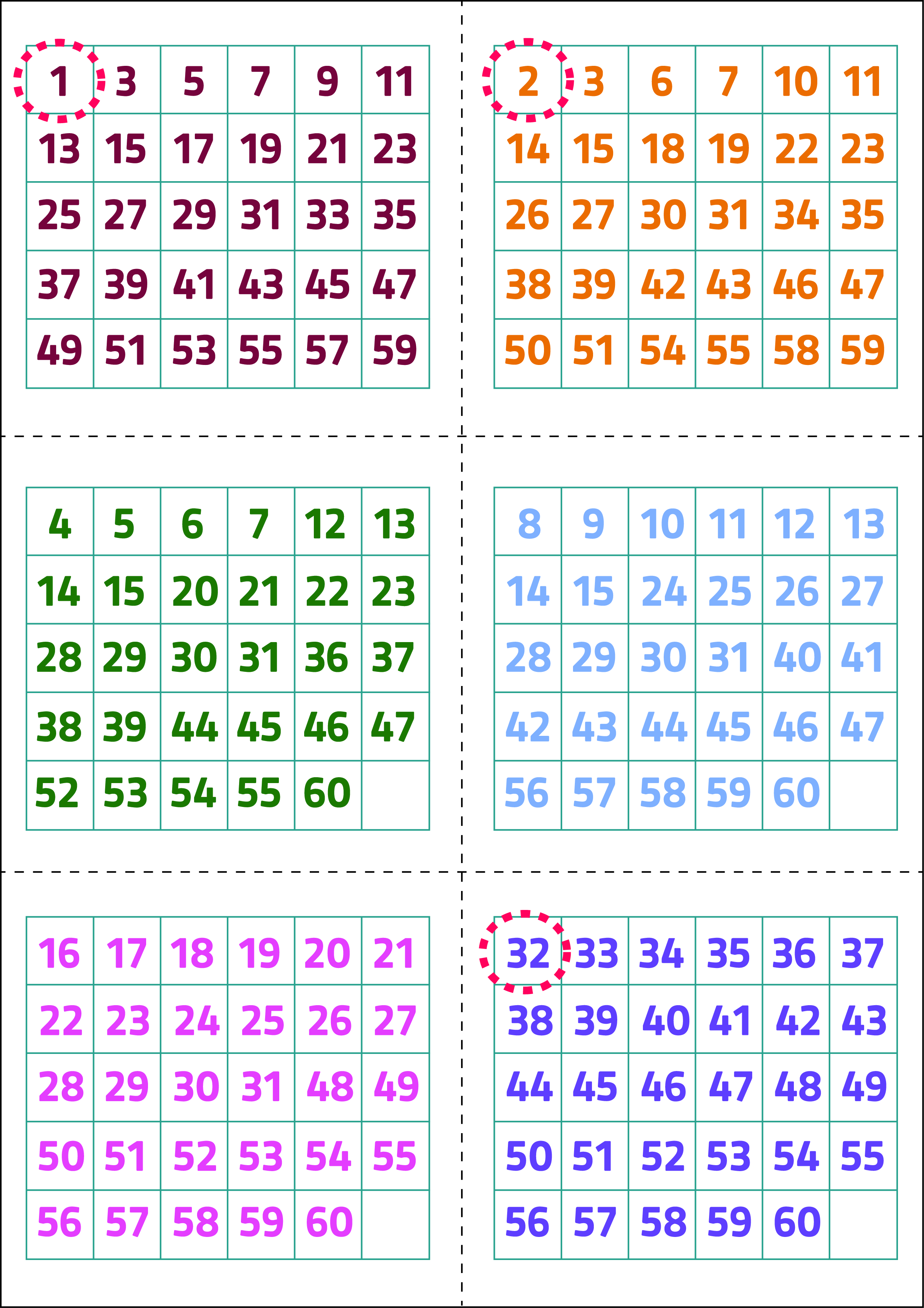 간단하면서도 재미있어하는 나이 맞추기 마술. A4 종이 1장 인쇄로 숫자 카드를 만들면 간단한 규칙으로 언제 어디서나 해볼 수 있습니다.