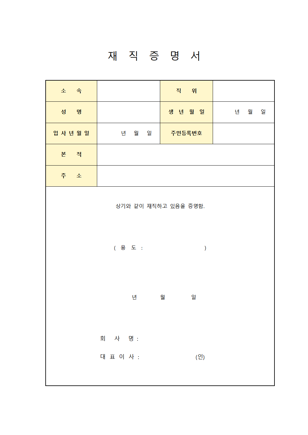 재직증명서 서식이 도움이 되시면 좋겠습니다.